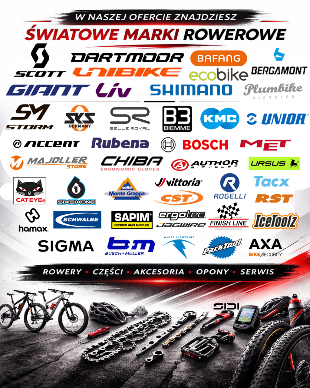 - W naszych sklepach zakupisz wszystkie akcesoria do rowerów i nie tylko, posiadamy w naszych magazynach największy wybór części i rowerów dostępnych od ręki w Oławie 🔩⚙️🪛